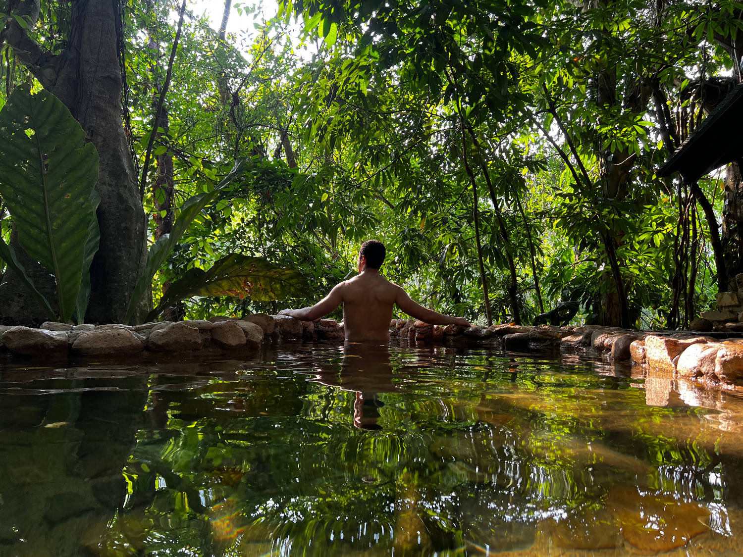 Piscinas naturales de agua caliente en medio del bosque, ideales para descansar y revitalizar el cuerpo después de un día de exploración.